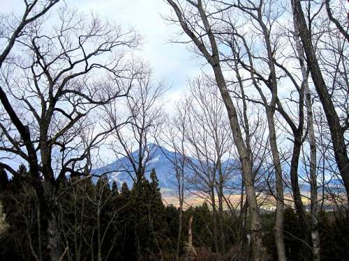冬になり、葉が落ちたために磐梯山が綺麗に望めるスポット