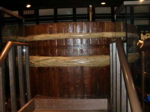 順路にしたがって進んでいくと、お酒を仕込む為の大きな樽がありました