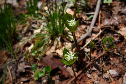 森の中で山野草探し                      散策中に発見した「ヒトリシズカ」
