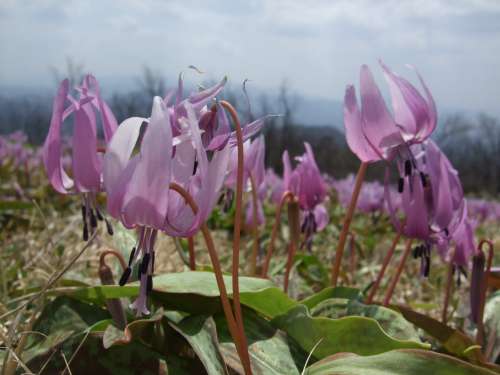 登山の労をねぎらうように、満開のかたくりの花が頂上で待ちかまえてくれてました