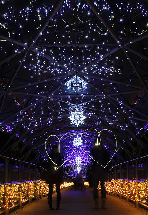 今年初めて設(shè)置された「キラメキの空中回廊」。 ここは二人の思いで作りに最高の撮影ポイントです。