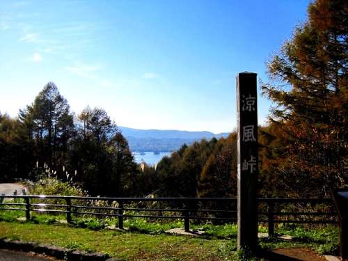 涼風峠 秋元湖が見えます。