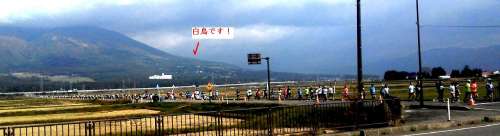 「みんな頑張れ!」と応援していると空では白鳥も応援しています