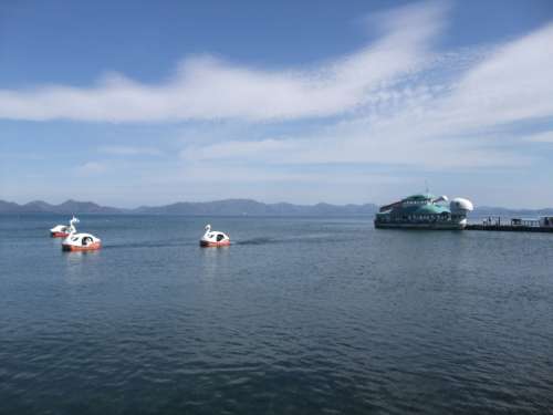 ■かめ丸(亀の形をした遊覧船)と白鳥ボート