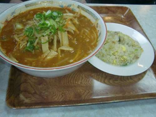 ラーメンとチャーハンが運(yùn)ばれて來ます、最高の晝食です