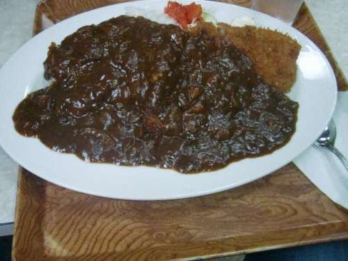 ハヤシライスかなぁ~!!いやぁ~違うなぁ~!!漆黒の獨(dú)特な和を感じるソースで何とも上手く表現(xiàn)出來ないのですがパリパリに揚(yáng)がったカツと絡(luò)み合って見事な美味しさです
