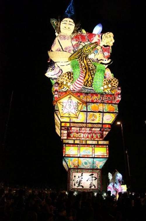 五所川原市にある梵珠山は、希代の陰陽師安部清明が一角に法乗寺というお寺を建立したという伝説が殘る神秘の山。 また山に點在する寺社仏閣などが北斗七星の配列になっており『梵珠北斗星』と呼ばれ近年パワースポットとして著目されています。 地域の寶に著目し魅力ある五所川原を発信するとともに、この立佞武多を動くパワースポットとしてご覧になる皆様に元気を與えたいという想いを込めて製作されたそうです。 北東北の寶に著目しその魅力を発信するのは私達アスピーテ體験隊の悲願でもあります、これは何としてでもこの祭りを見なければならない、隊長の指示の基スタッフは五所川原市を目指します。 遙か彼方から巨大な立佞武多がゆっくりと近づいてきます「ヤッテマーレ、ヤッテマーレ」という獨特の掛け聲、踴る人々、笛や太鼓の音???漆黒の闇夜の空に自ら光を発する立佞武多が幻想的な錦絵巻を描いてゆきます。