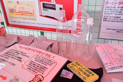 ペットボトルを社員の制服に、ガラス瓶を斷熱材に、などのリサイクルに取り組んでいる飲料メーカーによる展示、おがくずなどを再生した木質ペレットを使用するストーブの展示など、興味深いブースがいろいろ。會場で使う音響機材などの電源も、環境に良いとされる電気自動車から取っていました。