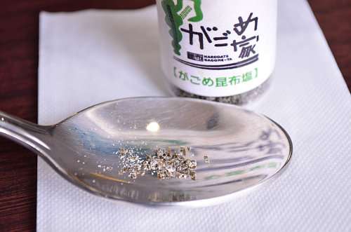 函館近海の海水を釜焚きして仕上げたまろやかな味わいの「がごめ昆布塩」をお好みでかけるのも良し。ポットに入っているだし汁をかけてお茶漬け風にするのもまた良しです。