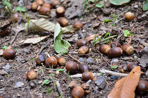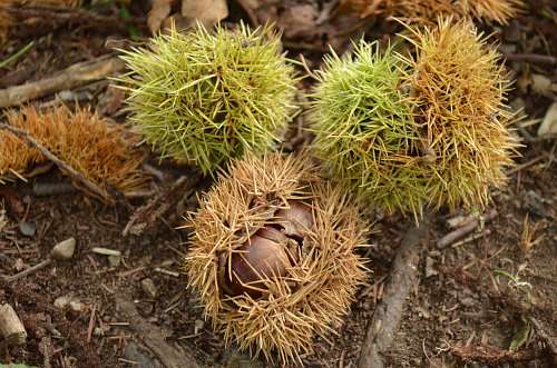 さらに進むと、今度は遊歩道にびっしりと栗のイガが落ちていました。ほとんどは中身がすでになくなっているか、干からびた身しか入っていませんが、中にはりっぱな栗の身が入っているものも。