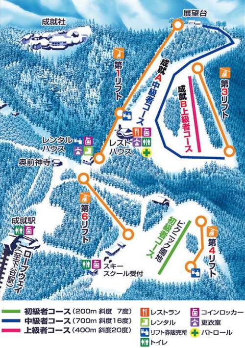 コースは3本、斜度16度で700mと少し長めの中級者向けのAコース、