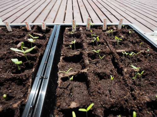 これら4種の中で、最初に芽がでたのはトマトで、それからかなり遅れてキュウリが、あきらめかけたころにナスとピーマンが芽を出した。