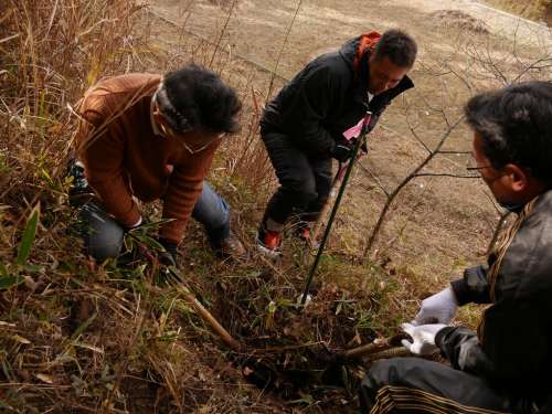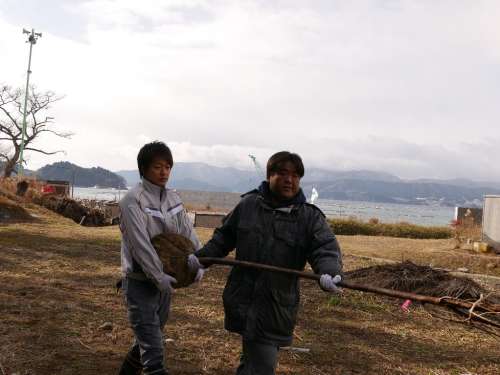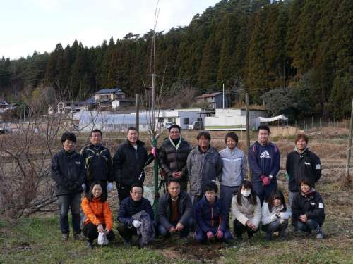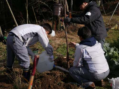 東日本大震災の津波到達點を後世の人に知らしめる為に植えられた桜並木「命の桜」枯れてしまったり、鹿に食べられてしまった樹の植え替えのお手伝いをさせていただきました。