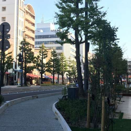 松山市駅と堀內(nèi)公園までの南北約250mの通りは「花園町通り」と呼ばれ、