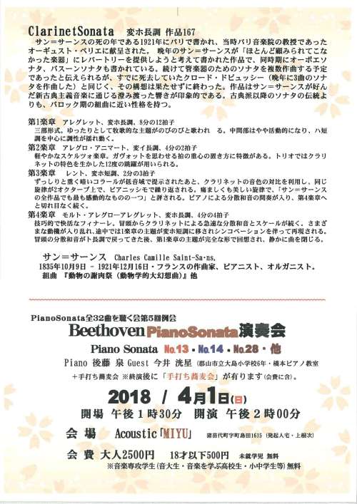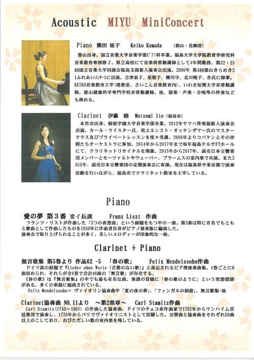 來る4月1日には県內のピアノ演奏者2名によるコンサートを開催します