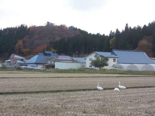 豬苗代湖には、冬の使者でもあるコハクチョウも飛來して、分譲地周辺のたんぼでは仲良くエサを探す姿が見受けられます。