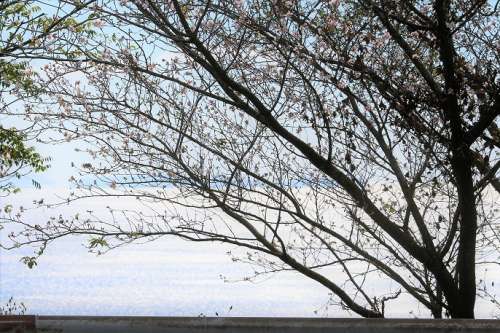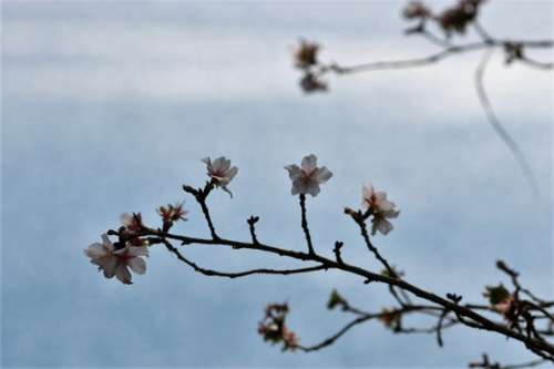 秋空と宇和海を背景に咲くこのサクラを見ると