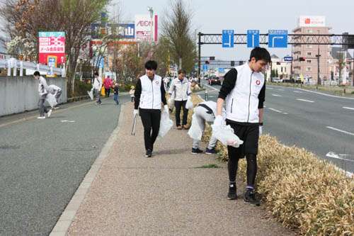 地域の各種団體や個人の方、約200名の方が參加し、手分けして盛南地區(qū)の沿道歩道の清掃を行います。