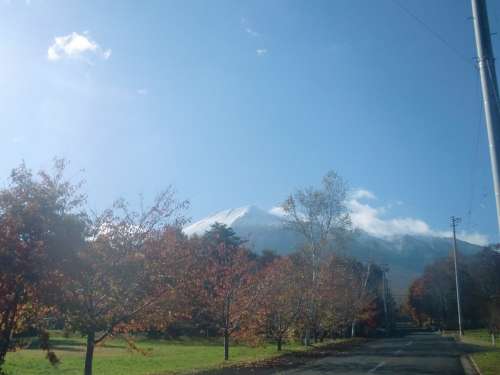天気が良く美しい巖手山が見れました。 さすが???巖手富士と呼ばれるだけに堂々とした姿です。 気象臺によると平年と比べて15日、昨年より23日遅いそうです。