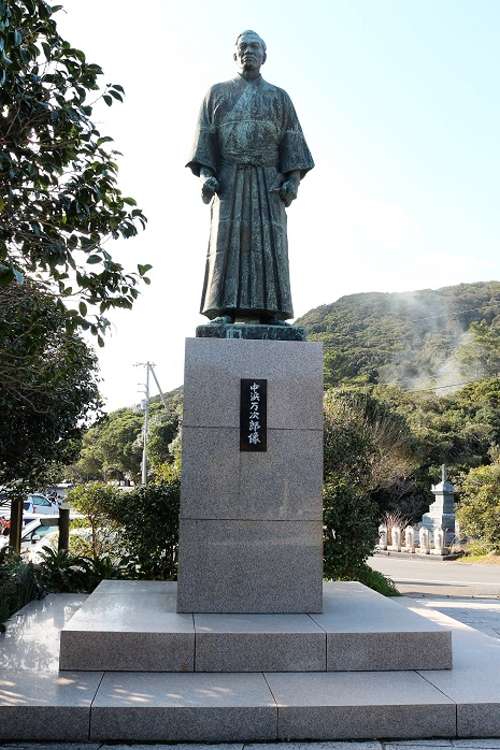 ジョン萬次郎こと中浜萬次郎の像が誇らしげに立っています