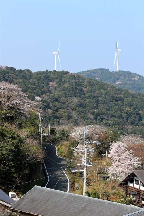 B街區からヤマザクラと風車
