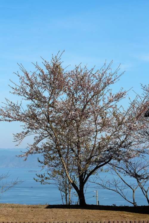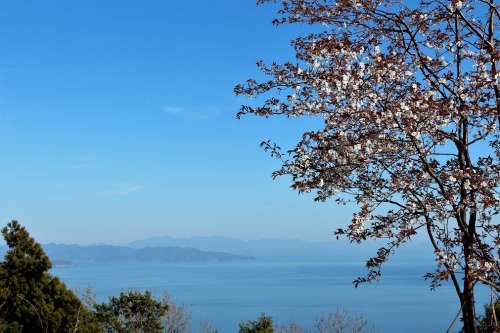 桜と瀬戸內海のコラボが