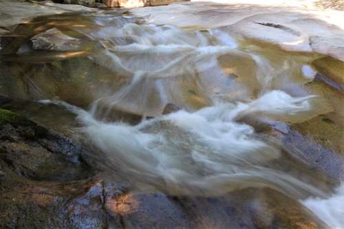 浸食された花崗巖の上を滑らかに流れる渓流が続き