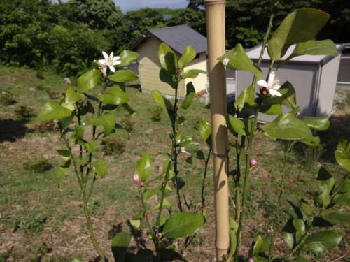 分譲地內の道並み整備で植えたレモンの花が咲きました