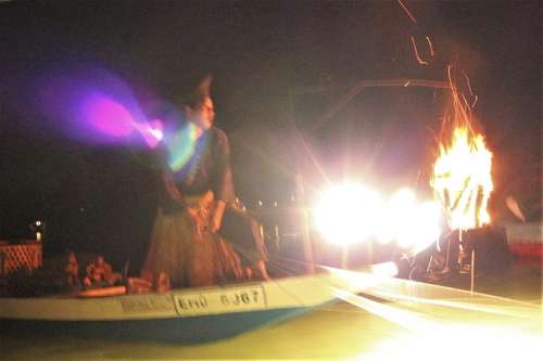 漁火を炊いた鵜飼い船がやって來ました