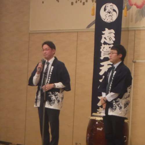 マグロの解體ショーや太鼓で盛り上がり、お子さんも一緒に參加して楽しい會になりました
