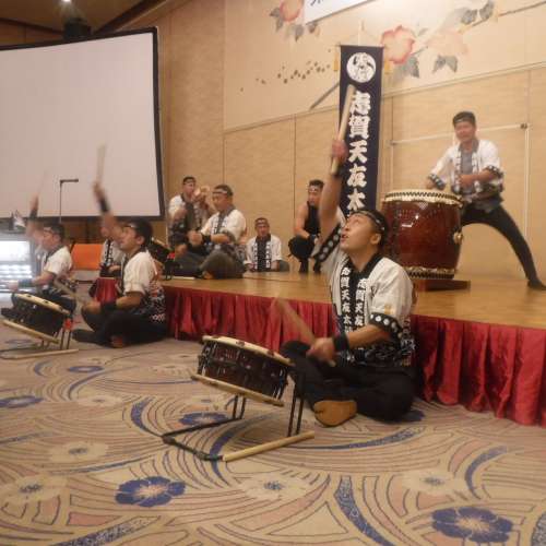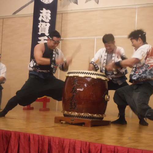 躍動感あふれる演奏に會場が沸き、オーナー様を魅了 これぞ志賀町の太鼓