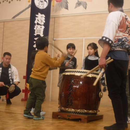 演奏後に、子どもたちも參加! 初めての太鼓打ち楽しそうでしたよ
