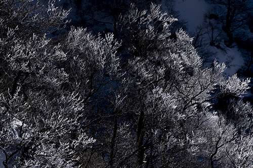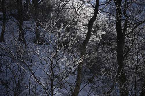 極寒の森の中。 厳しい冬が描き出す世界は いつもながらに何とも幻想的。 その一つがこの樹氷。 曇り空だと何の感動もないのに、 陽が射したその瞬間、 キラキラと光るその様子は本當に神秘的。 寒さも忘れる時間です。