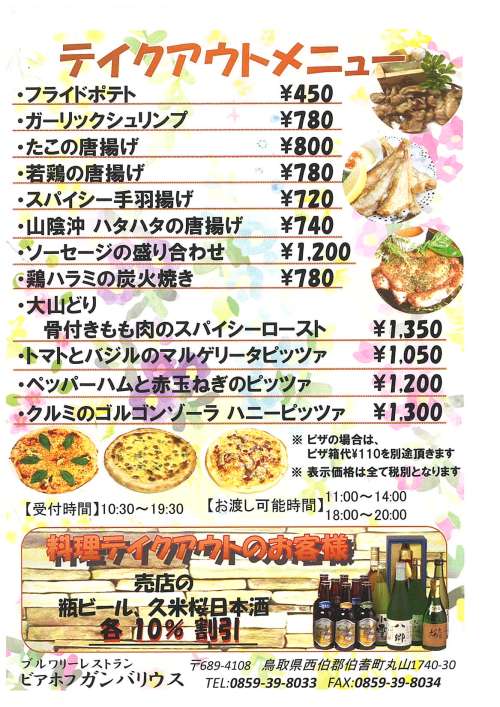 ビアホフ ガンバリウスさんが、テイクアウトメニューを開始されました!