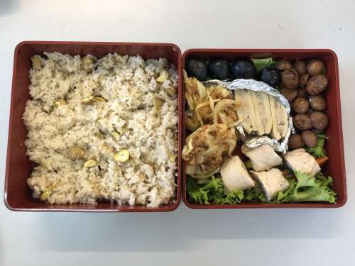 天ぷらとクリは別の容器に入っていたのですが、おかずの一部を食べてしまったので