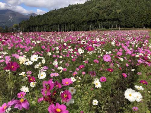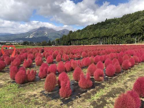 皆さんこんにちは。 豬苗代では有名な「リステル」というリゾートホテルの敷地內に 「コキア」と「コスモス」が咲き亂れていると聞いたので、 お仕事中にちょっとだけ行ってきました。 「コキア」と「コスモス」を間近で見るためには、350円を払って 「豬苗代ハーブ園」に入らなければなりません。 中に入ると、まず目につくのは、この素敵な「ブーゲンビリア」❁。 花言葉は、「あなたしか見えない」「あなたは魅力に満ちている」らしいです。 なんて情熱的な花言葉なんでしょうか。 奧に行くと、色とりどりのカサが飾ってました🌂。 皆さんポーズをとって寫真撮影をしています。知らない人ですが、 思わず撮ってしまいました。怒られないように、目は隠してます。 ハーブ園から外に出ると、何だか巨大なイチゴみたいな草が見えてきました🍓。 ポンキッキのムックです👻。いや、これが「コキア」です。 色はとってもキレイでした。ちなみに花言葉は、「あなたにすべて打ち明けます」 「夫婦円満」などらしいですが、花言葉はどう考えてもムックでしょ👻。 その橫にはコスモスが咲き亂れてました❁❁。 しつこいですが、白いコスモスの花言葉は「優美」「美麗」です。 ピンクは「乙女の純潔」、赤は「乙女の愛情」です。 …何を言ってるんだか分かりません。 現地より約8.1キロ 令和3年10月撮影 350円にしては、見どころ満載でした。でも、スーツに革靴で 花を撮っているおっさんは、やっぱり私だけでした。