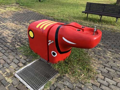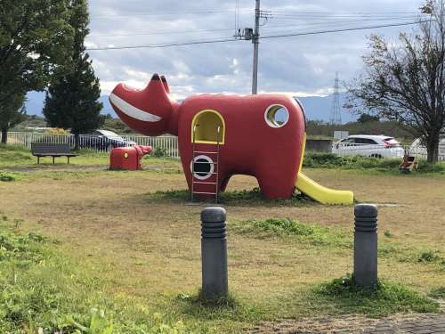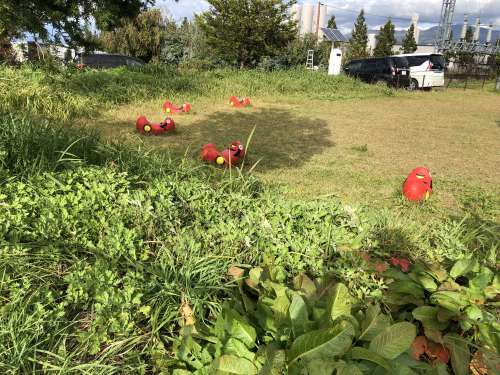 あっ、こんなとこにも小さい「赤べこ」が5頭もいた!…って。普通の公園でしょ