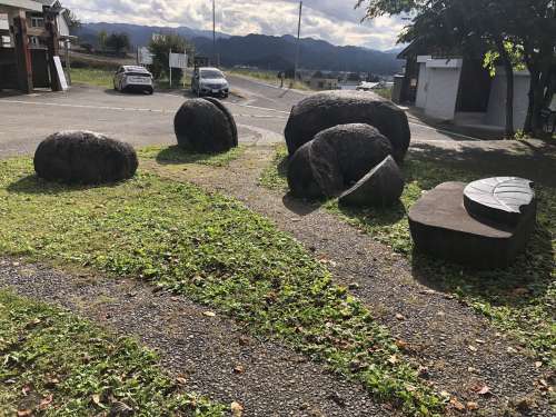 「化石の広場」向かいに建っていた資料館の方が出てきたので、どうやって切ったのか