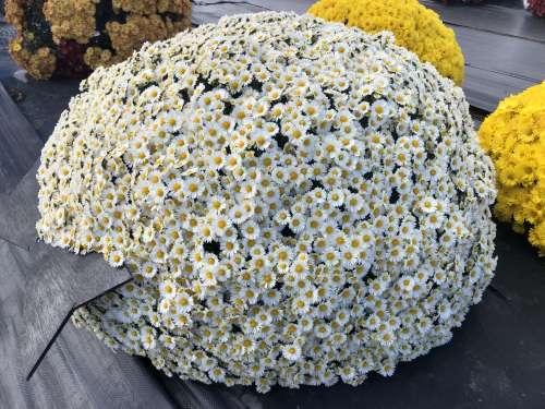 一株に何千もの小菊が重なり合って、大きな丸い形を作った姿が