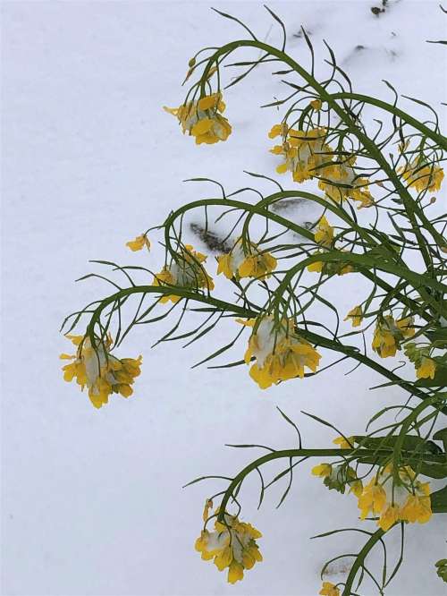 2月18日ようやく咲き揃った菜の花も冷たそう