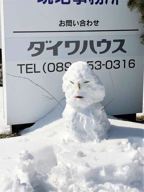 午前中に造られた雪だるま(顔が怖いと不評(píng))も