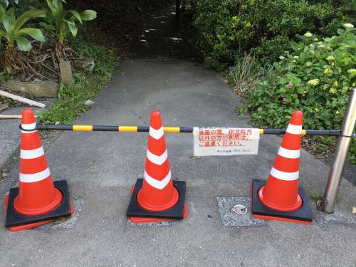 伊方町民以外はご遠慮くださいの案內&バリケードが…。