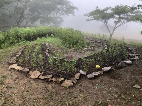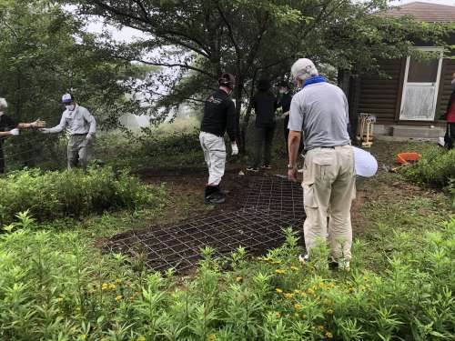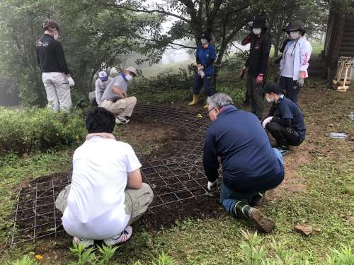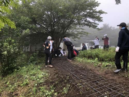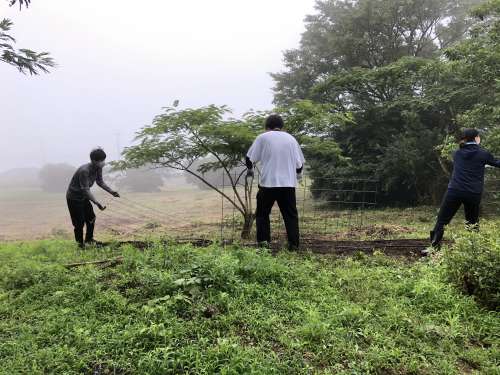この格子の鉄筋を敷く事で、豬が地面を掘り返してしまう被害を防ぐことが