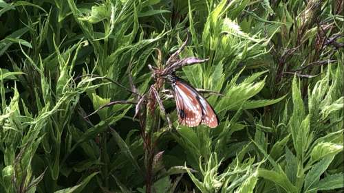 とまっているアサギマダラです。10月頃は花にとまりますが、今はまだ咲いて