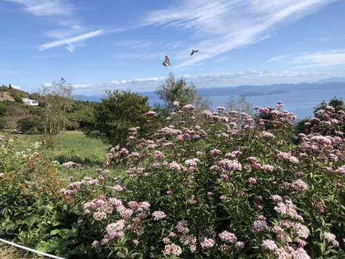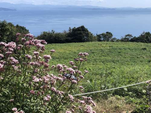 新しくフジバカマを植えた場所は、宇和海の遠景も一緒に畫像に収めることが