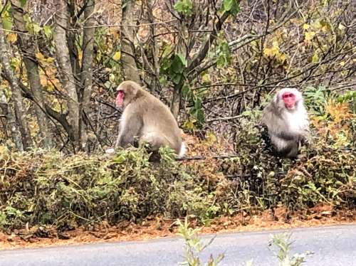 國道459號線の真ん中を堂々と歩くおサルさんを発見!