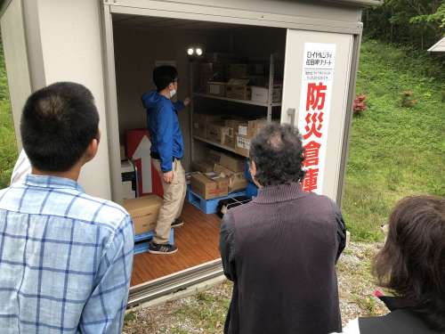 最後は、実際にリゾート內(nèi)に弊社が設置している防災倉庫の內(nèi)覧&備蓄品説明會
