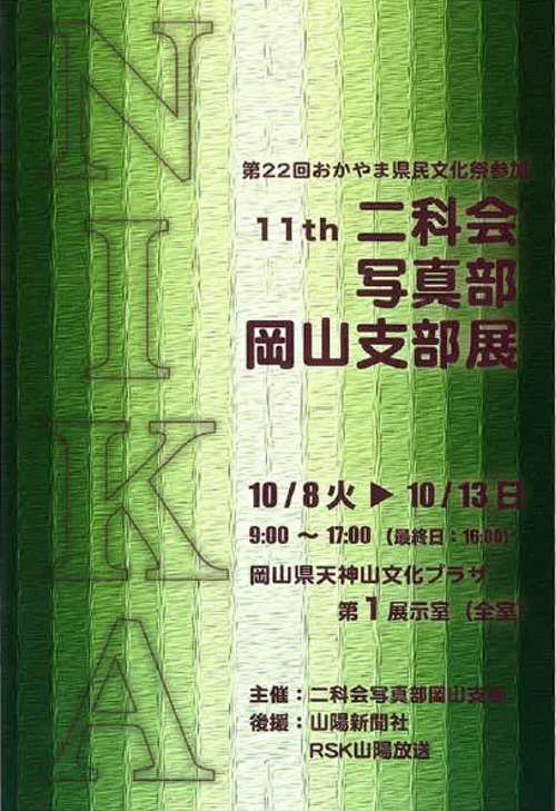 第11回 二科會寫真部岡山支部展 NIKA】のご案內です。
