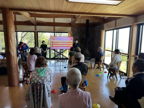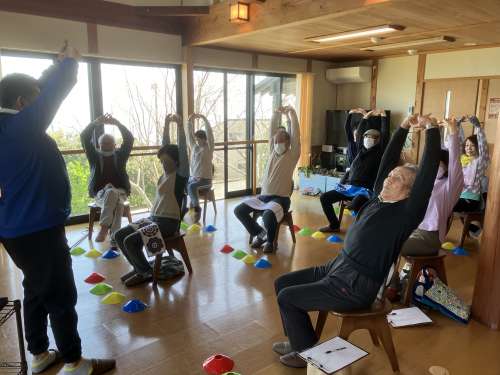 みなさまこんにちは 本日は、3月29日(金)に元地域おこし協力隊で現在伊方町內で町民のかた向けに ヘルスケアの會社を町內に起業した大木喜知さんを講師に招き ヘルスケア「メディカルフィットネス」 を開催いたしました 今回の內容は、椅子に座って簡単にできる上半身の運動と著座のまま足を 動かす運動など初心者の方でも比較的行いやすい內容での実施となりました。 スタートしました! 最初は講師の大木さんの自己紹介でした。 大木さんは以前は東京で活動しており、多くのプロスポーツやオリンピアンなどの トレーナーもされていたとのことでした 最初は比較的単純な動きの體操から始まり徐々に難易度があがっていきました 講師の大木さんが指定した色を足で順番に踏んでいく足の體操ですが、最初は みなさん出來ておりましたが、どんどん指定が難しくなり脫落される參加者の 方もおりました しかし、ご安心ください講師の大木さんが言われておりましたが年齢に関係なく 最初はどなたでも出來ないそうです 體操の後、後半はカラオケメーカーの第一興商さんにもお越しいただきカラオケ の機械に入っております歌の體操とイントロ曲あてゲームをやって盛り上がりました この機械には、イントロクイズのほかゲームのデータも入っております。 みなさん正解後は揃って歌っておりました 今回はヘルスケア運動「メディカルフィットネス」+「カラオケゲーム」の 組み合わせで実施いたしましたが、ご參加いただいたオーナー様はみなさん とても喜ばれてお帰りになっておりました。 シェアサロンにみなさんのカラオケの歌が響き渡るのは初めての光景でした ので、その時は何とも言えない一體感が生まれていた感じでした 今後は、伊方町が瀬戸アグリトピアさんに地域の方にご參加、ご利用いただく 目的で設置を検討しており、シェアサロンでも定期的に実施を検討しておりま すのでその際はぜひみなさまのご利用お待ちしております ■撮影日:2024年3月29日 ■會場:暮らす森佐田岬シェアサロン(現地事務所1階)