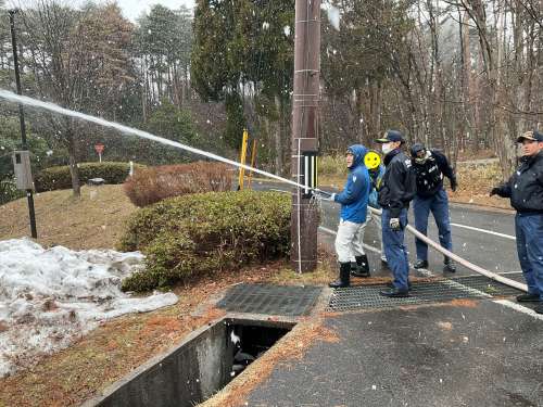 最後は、リゾート內に設置してある消火栓を使用し放水訓練を行いました。